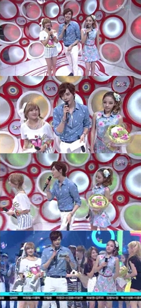 이는 앞서 1일 방송된 생방송 SBS '인기가요'에서 MC 이종석이 실수를 하자 구하라가 도와주려 했지만 똑같은 실수를 반복한 이종석이 당황한 나머지 구하라의 말을 끊고 "뮤직 스타트~"외쳤기 때문.