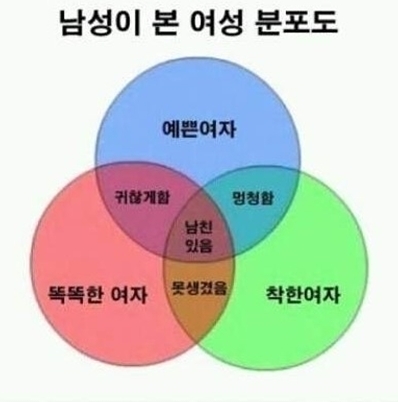 그리고 예쁘고, 착하며, 똑똑한 여자는 그 수가 가장 적지만 이미 남자친구가 있다고 한다.