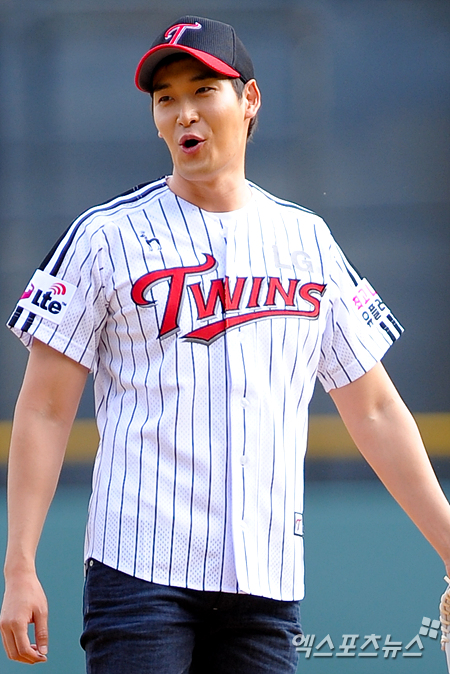 [엑스포츠뉴스=잠실, 권혁재 기자] 7일 오후 잠실구장에서 열린 '2012 팔도 프로야구' LG 트윈스와 두산 베어스의 경기에 앞서 배우 정겨운이 마운드에서 시구를 하고 있다.