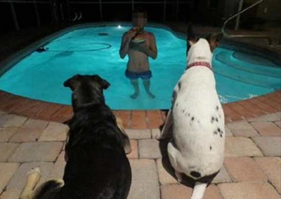 '피자 혼자 먹는 법' 속에는 피자 혼자 먹는 법을 알려주는 남성의 모습이 담겨 있다. 이 남성은 수영장에 들어가 피자를 먹고 있는 중이고 앞에 앉아 있는 강아지 두 마리는 남성에게 접근하지 못한 채 바라보고만 있어 폭소를 자아내게 만든다.