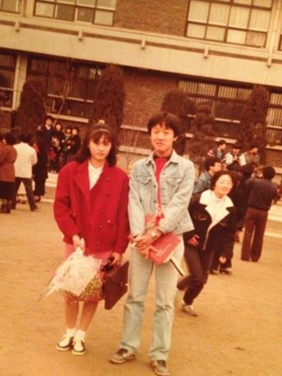 공개된 사진에는 정준하의 중학교 졸업식 모습이 담겼다. 그는 미모의 여성과 나란히 서 있으며, 수줍은 듯한 미소를 짓고 있다.