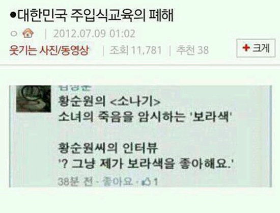 주입식 교육의 폐해, 소설 '소나기'의 '보라색' 알고 보니?