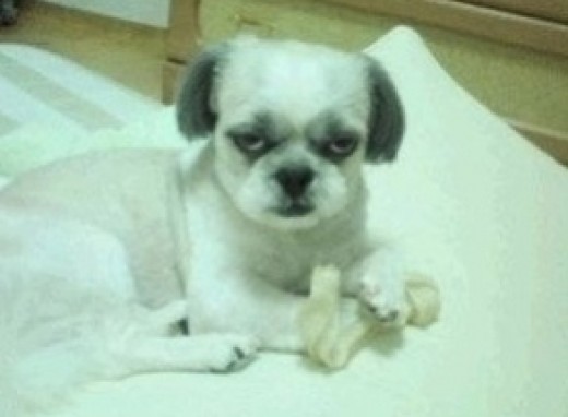 공개된 사진에는 앞발에 개껌을 가진 채 무서운 눈빛으로 정면을 노려보고 있는 강아지 한 마리의 모습이 담겨 있다.