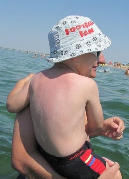 공개한 사진 속에는 바닷가로 여행을 떠나 즐거운 시간을 보내고 있는 아빠와 아들의 모습이 담겨 있다.
