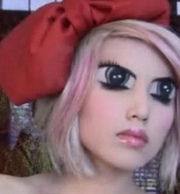 사실 해당 여성은 눈을 감고 있는 것으로 눈두덩 위에 화장으로 커다란 눈을 그려넣은 것이다.