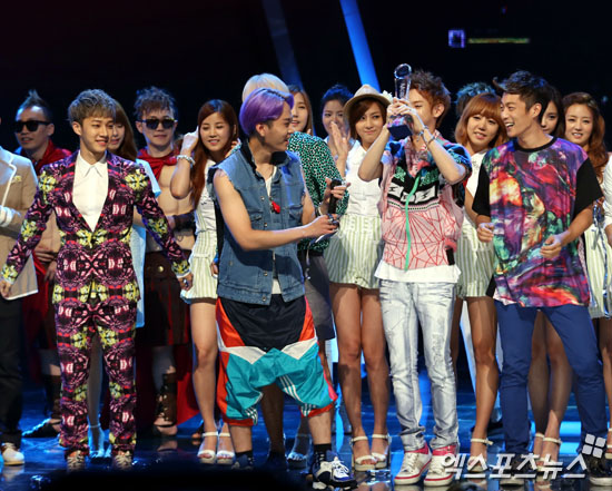 [엑스포츠뉴스 = 김성진 기자] 2일 오후 서울 상암동 CJ E&M센터에서 열린 Mnet ‘엠카운트다운’ 생방송 현장공개에서 1위를 차지한그룹 비스트가 세레머니를 하고 있다.