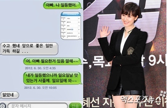 사진 속에는 구혜선이 그녀의 쿨한 아버지와 주고받은 문자메시지가 담겨 있다.