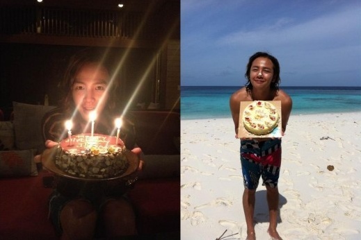 이어, 그는 "아시아 프린스의 생일이다. 풍악을 울려라!"라는 글과 함께 또 한 장의 사진을 공개했으며, 사진에는 바닷가에서 반바지만 입은 장근석이 케이크를 들고 미소를 짓고 있다.