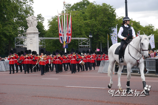 [엑스포츠뉴스=런던, 진정규 런던특파원] 런던의 랜드마크 버킹엄궁의 근위병 교대식이 7일(한국시간) 열렸다. 실제 버킹엄궁의 안전은 경찰이 담당하고 있으나 상징적 의미인 근위병 교대식은 수천명이 관람할 정도로 인기가 많다.