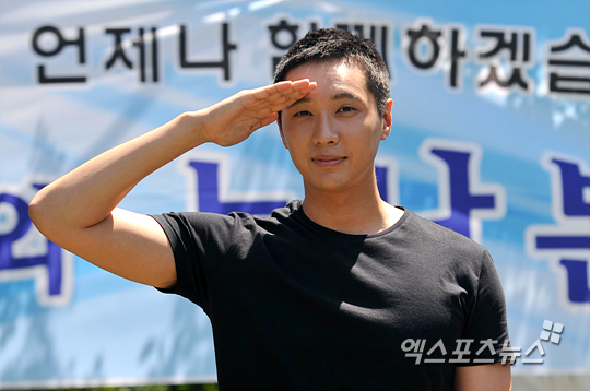 [엑스포츠뉴스=춘천, 권혁재 기자] 7일 오후 강원도 춘천시 102보충대를 통해 현역으로 입대하는 배우 지현우가 입대 전 인터뷰를 위해 취재진과 팬들 앞에 입장하여 포토타임을 갖고 있다.