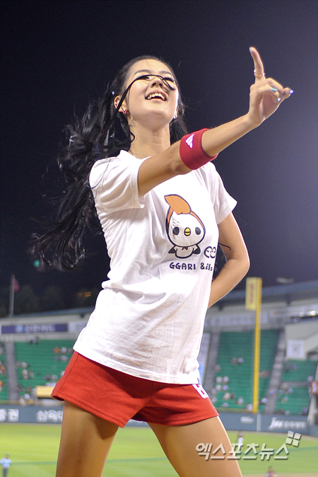 [엑스포츠뉴스=잠실, 권혁재 기자] 7일 오후 서울 잠실구장에서 열린 '2012 팔도 프로야구' LG 트윈스와 롯데 자이언츠이 경기에서 롯데 여신으로 인기몰이 하고 있는 롯데 치어리더 박기량이 깜찍한 응원을 펼치고 있다.