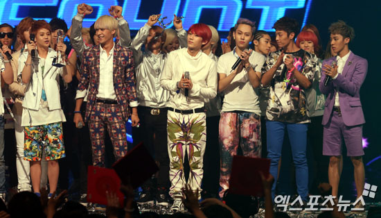 [엑스포츠뉴스 = 김성진 기자] 2일 오후 서울 상암동 CJ E&M센터에서 열린 Mnet ‘엠카운트다운’ 생방송 현장공개에서 그룹 비스트가 1위 세레머니를 하고 있는 가운데, 이날 ‘엠카운트다운’에서는 그룹 비스트가 2주 연속 1위를 차지했다.
