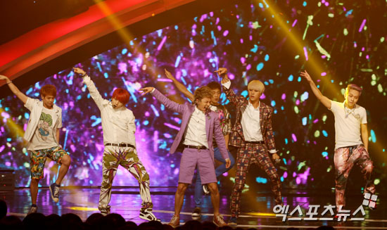 [엑스포츠뉴스 = 김성진 기자] 9일 오후 서울 상암동 CJ E&M센터에서 열린 Mnet ‘엠카운트다운’ 생방송 현장공개에서 그룹 비스트가 무대를 꾸미고 있는 가운데, 이날 ‘엠카운트다운’에서는 그룹 비스트가 2주 연속 1위를 차지했다.