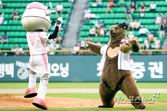 [엑스포츠뉴스=잠실, 권혁재 기자] 17일 오후 잠실구장에서 열린 '2012 팔도 프로야구' 두산 베어스와 삼성 라이온즈의 경기에 앞서 시구를 맡은 서울 N타워 마스코트 곰 '엔사랑이'가 마운드에서 시구를 하고 있다.