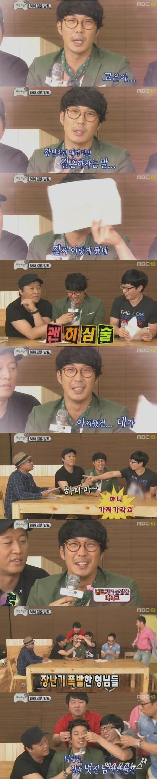 25일 방송된 MBC '무한도전'에서는 하하의 결혼을 축하 하는 무한도전 멤버들의 격한 반응이 전파를 탔다. 무한도전 멤버들은 하하에게 축하 노래를 불러주며 박수를 치는 등 격한 반응을 보였다.