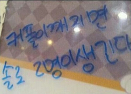 최근 한 온라인 커뮤니티 게시판에는 '커플이 깨져야 하는 이유'라는 제목으로 사진 한 장이 게재됐다.