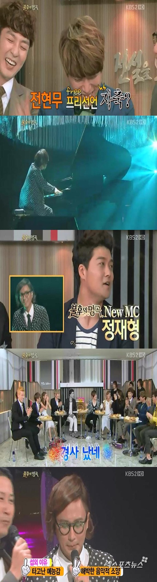 MC 전현무는 프리 선언을 하면서 이날 방송을 마지막으로 불후의 명곡2를 하차하게 됐다. 새로운 MC 정재형은 열정적인 피아노 연주를 선보이면서 등장했다.