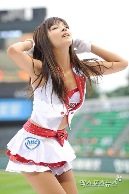 [엑스포츠뉴스=잠실, 권혁재 기자] 9일 오후 서울 잠실구장에서 열린 '2012 팔도 프로야구' LG 트윈스와 KIA 타이거즈의 경기에서 LG 구하라 닮을꼴 치어리더 강윤이가 섹시한 안무를 선보이고 있다.