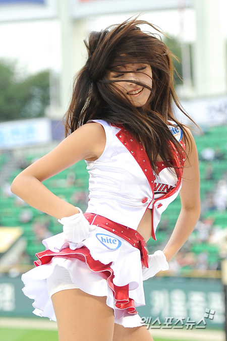 [엑스포츠뉴스=잠실, 권혁재 기자] 9일 오후 서울 잠실구장에서 열린 '2012 팔도 프로야구' LG 트윈스와 KIA 타이거즈의 경기에서 LG 구하라 닮을꼴 치어리더 강윤이가 섹시한 안무를 선보이고 있다.