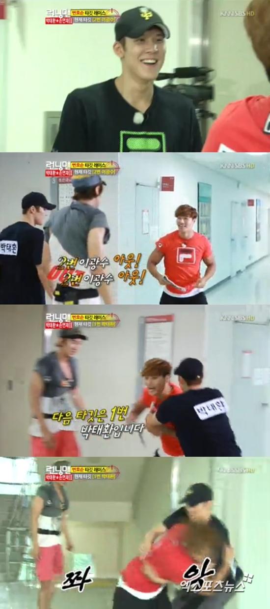 이날 방송에서 박태환과 김종국은 부활카드로 살아났고, 이광수를 아웃시키며 일대일 대결을 펼쳤다.