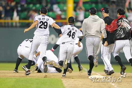 전날(8일) 연장 12회 가는 접전 끝에 김용의의 끝내기 희생플라이로 5-4 승리를 거뒀던 LG는 이날도 연장 10회말 이대형의 끝내기 안타에 힘입어 이틀 연속 연장 끝내기 승리를 거두었다.