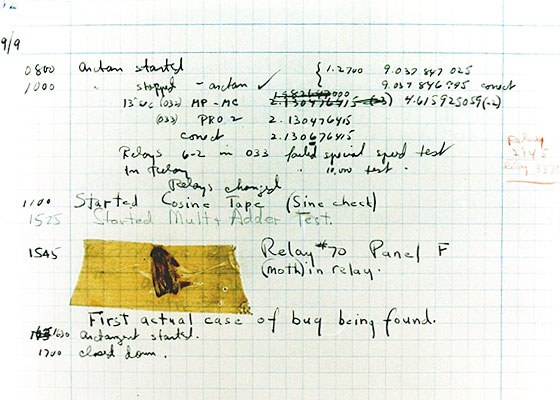 당시 그레이스 하퍼는 컴퓨터의 고장 원인을 조사하던 중 회로 사이에 나방 한 마리가 끼어 있는 것을 발견했고 이후 벌레라는 뜻의 '버그'라는 단어가 컴퓨터 용어가 되었다고 알려졌다.