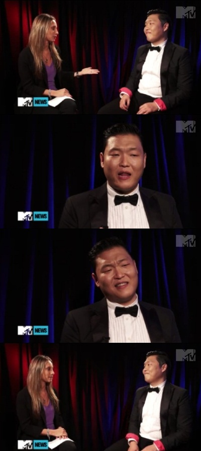 싸이는 "불행하게도 나는 여기서 신참이다. 여기서 톱스타가 될 때 그들을 도와주고 싶다"며 "그들의 패러디가 잘못됐다고 생각하지 않는다"고 말했다. 이어 싸이는 "패러디 영상을 봤는데, 너무 잘 만들어졌더라. 안타깝다"고 말했다.