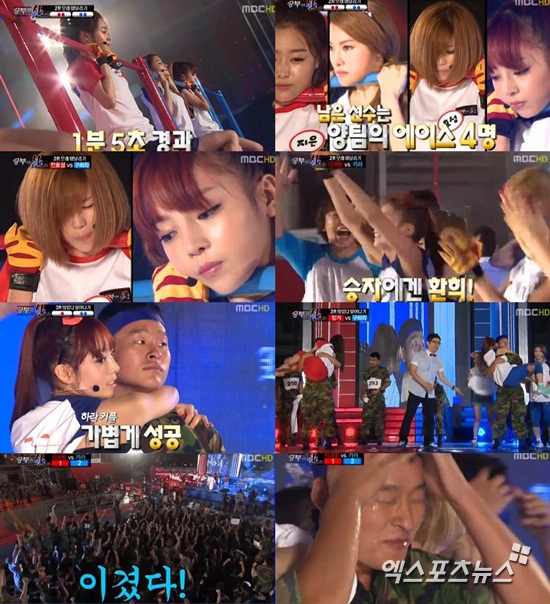 두 사람은 체력이 바닥난 상태에서 정신력으로 버티고 있었다. 힘들어하던 효성이 탈락하면서 하라가 속한 카라가 승리하게 됐다. 연습 기록을 훨씬 넘어선 기록으로 승리를 차지한 하라와 카라 멤버들은 기뻐했다.