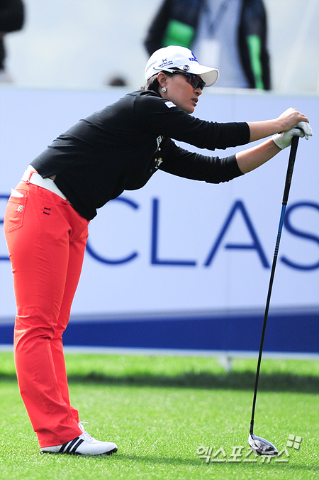 [엑스포츠뉴스=평창, 권혁재 기자] 21일 오전 강원도 평창 휘닉스파크CC(파72/6416야드)에서 열린 'KDB대우증권 클래식 2012'(총상금 6억원/우승상금 1억2천만원) 1라운드 박세리(35. KDB금융그룹)이 1번홀 티샷을 위해 스트레칭을 하고 있다.