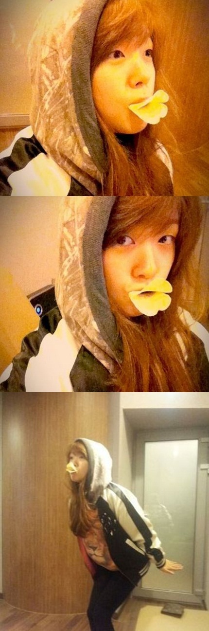 공개된 사진 속 민아는 화장기 없는 얼굴로 입에 과자를 물고 오리 흉내를 내고 있다. 특히 엉덩이를 내민 포즈가 오리를 연상시켜 웃음을 주고 있다.