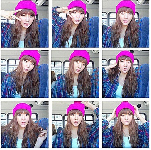 공개된 사진 속 수빈은 체크무늬 셔츠를 입고 핑크색 모자를 쓴 채 다양한 포즈를 취하고 있다.