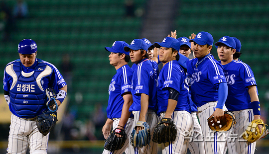 [엑스포츠뉴스=잠실, 권혁재 기자] 1일 오후 서울 잠실구장에서 열린 '2012 팔도 프로야구' LG 트윈스와 삼성 라이온즈의 경기에서 삼성이 9-3으로 승리를 거두며 76승 2무 50패 승률 0.603로 5경기를 남겨두고 정규시즌 우승을 확정지었다.