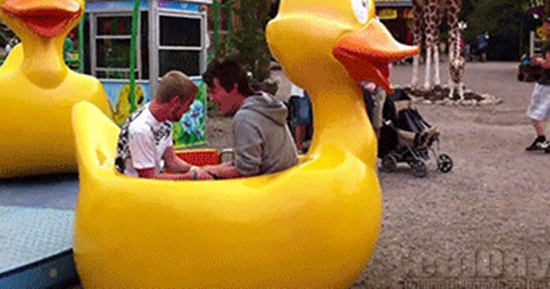 게재된 '충격의 놀이기구 이탈' 영상에는 놀이공원에서 즐겁게 오리로 된 놀이 기구를 타고 있는 사람들의 모습이 담겨있다.