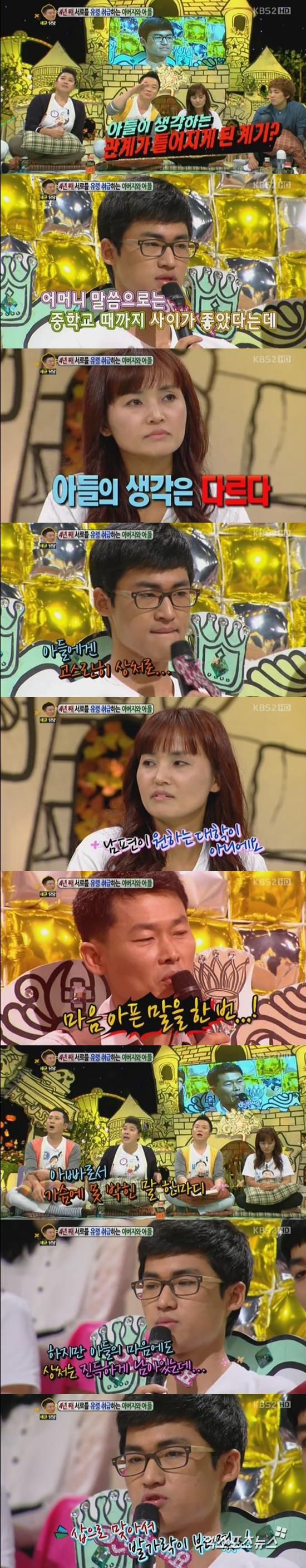 스튜디오에 등장한 아들은 "엄마는 어릴 때는 아버지와 사이가 좋았다고 했는데 사실은 아니였다. 불만이 하나씩 쌓이다 보니 점점 아버지가 싫어졌다"고 자신의 입장을 해명했다.