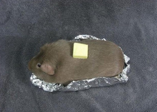 게재된 '감자인 척 햄스터' 사진에는 구운 통감자 흉내를 내는 햄스터의 모습이 담겨 있다.