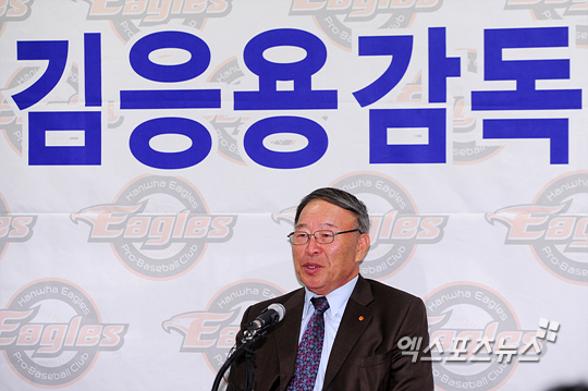 [엑스포츠뉴스=대전, 권혁재 기자] 15일 오전 대전구장에서 열린 한화 김응룡 감독의 선수단 상견례 및 취임식을 마치고 열린 기자회견에서 김응룡 감독이 취재진의 질문에 답하고 있다.
