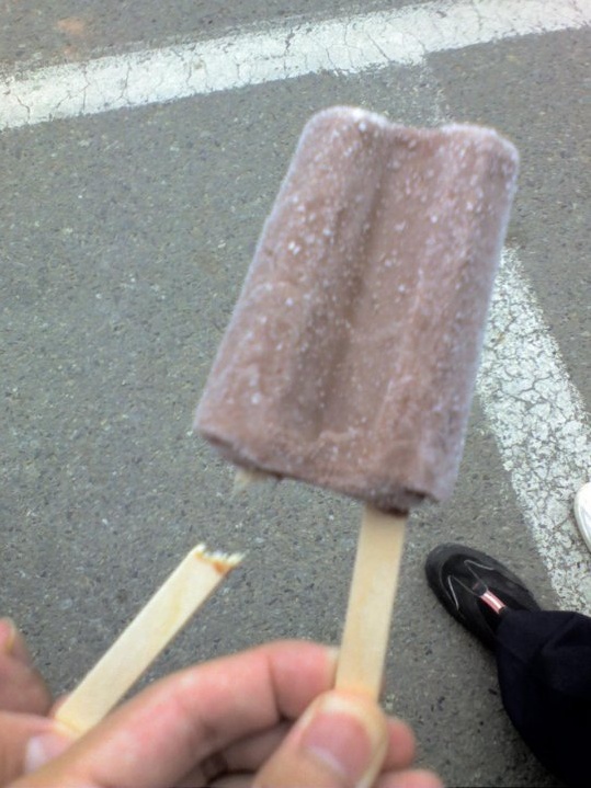 하지만 아이스크림을 둘로 나누려는 순간 막대가 부러져버려 둘이 나눠먹기에는 애매한 상황이 발생했다.