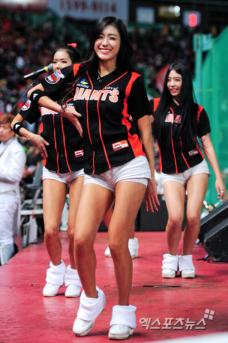 [엑스포츠뉴스=인천, 권혁재 기자] 17일 오후 인천 문학구장에서 열린 2012 팔도 프로야구 플레이오프 2차전 SK 와이번스와 롯데 자이언츠의 경기에서 롯데 치어리더들이 섹시한 안무를 선보이고 있다.