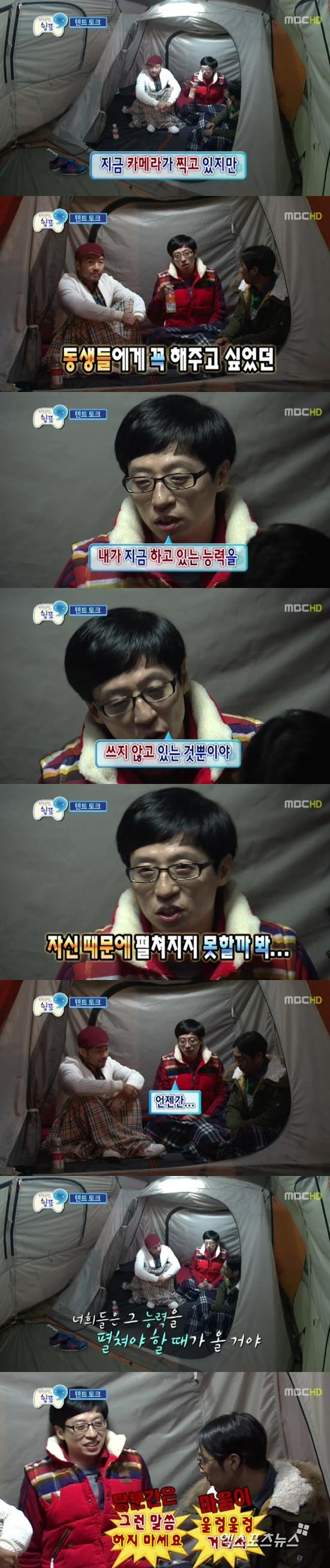 이어 유재석은 "내가 지금 하고 있는 능력을 너희는 쓰지 않고 있는 것 뿐이다"라며 "언젠가 너희가 그 능력을 펼쳐야 할 때가 올 거다"라고 자신 때문에 후배들이 능력을 펼치지 못할까 걱정했다.