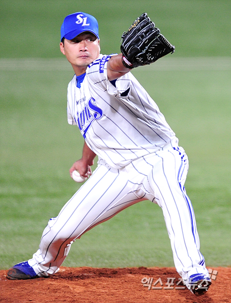 [엑스포츠뉴스=대구, 권혁재 기자] 24일 오후 대구 시민구장에서 열린 2012 팔도 프로야구 한국시리즈 1차전 삼성 라이온즈와 SK 와이번스의 경기에서 삼성이 3-1으로 앞선 8회 2아웃 1루 마운드에 오른 삼성 마무리 투수 오승환이 힘차게 공을 던지고 있다.