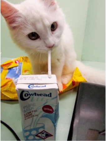공개된 사진 속에는 고양이가 천진난만한 얼굴을 한 채 급식 우유를 마시고 있는 모습을 볼 수 있다.