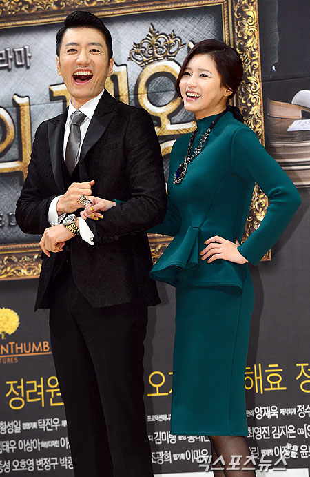 [엑스포츠뉴스 = 권태완 기자] 31일 오후 서울 목동 SBS사옥에서 열린 SBS 월화드라마 '드라마의 제왕' 제작발표회에 김명민(왼쪽)과 오지은이 포즈를 취했다.