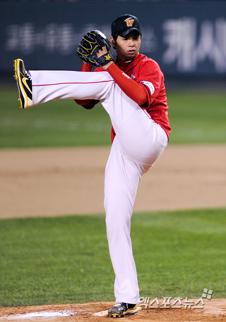 [한국시리즈] 윤희상 '내 공의 위력은 높은 발차기~'[포토]