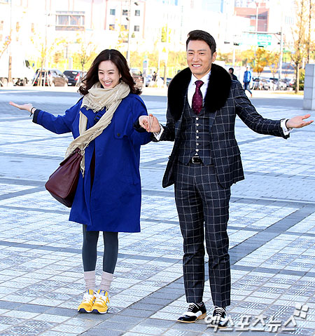 [엑스포츠뉴스 = 김성진 기자] 2일 오후 서울 마포구 상암동 SBS 프리즘타워에서 열린 SBS 월화드라마 ‘드라마의 제왕’ 현장공개에 정려원(왼쪽)과 김명민이 포즈를 취하고 있다.