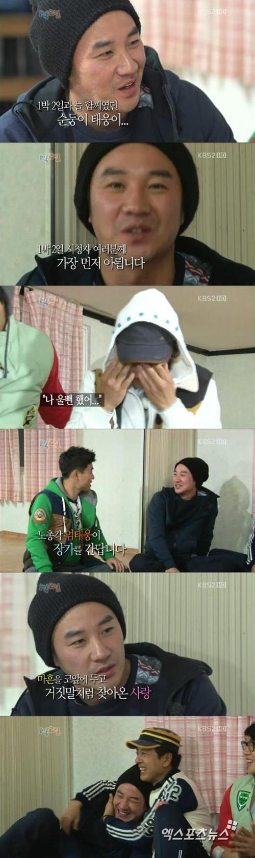 멤버들은 엄태웅이 혹시 프로그램을 하차하려고 하나 하는 마음에 걱정스런 얼굴로 엄태웅을 쳐다봤다.