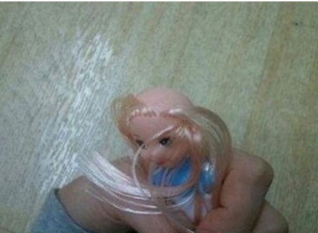 사진 속에는 머리카락이 한 움큼 빠진 바비 인형의 모습이 담겨 있다.