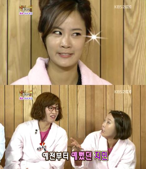 개그우먼 김지민은 8일 방송된 KBS 2TV '해피투게더3'에 출연해 "얼굴을 집중적으로 관리하고 있다"고 말했다.
