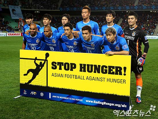 [엑스포츠뉴스 = 울산, 김성진 기자] 10일 오후 울산 남구 옥동 울산문수축구경기장에서 열린 '2012 AFC 챔피언스리그 결승전(AFC Champions League Fanal)' 울산 현대와 알 아흘리의 경기에 울산 현대 선수단이 경기 시작 전 기념촬영을 하고 있다.