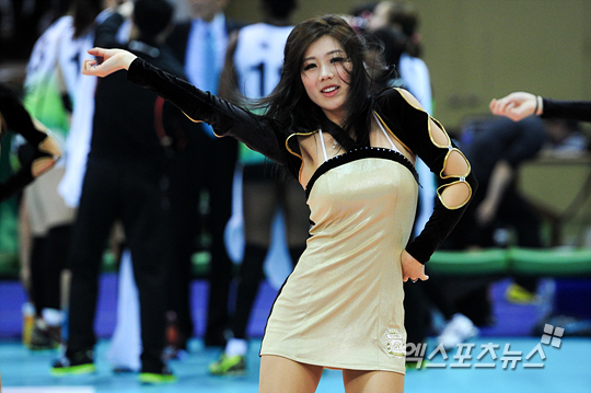 [엑스포츠뉴스=수원실내, 권혁재 기자] 20일 오후 수원 실내체육관에서 열린 '2012-2013 NH농협 V리그' 여자부 현대건설과 GS 칼텍스의 경기에서 현대건설 치어리더 오로라가 섹시한 안무를 선보이고 있다.