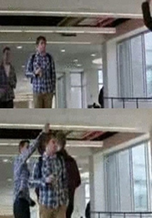 그러나 다가오던 남성은 자신이 아닌 뒤편에 있던 남성에게 하이파이브를 건넸고 이에 체크무늬 셔츠를 입은 남성은 민망한 웃음을 지으며 머쓱해 하는 모습을 보인다.